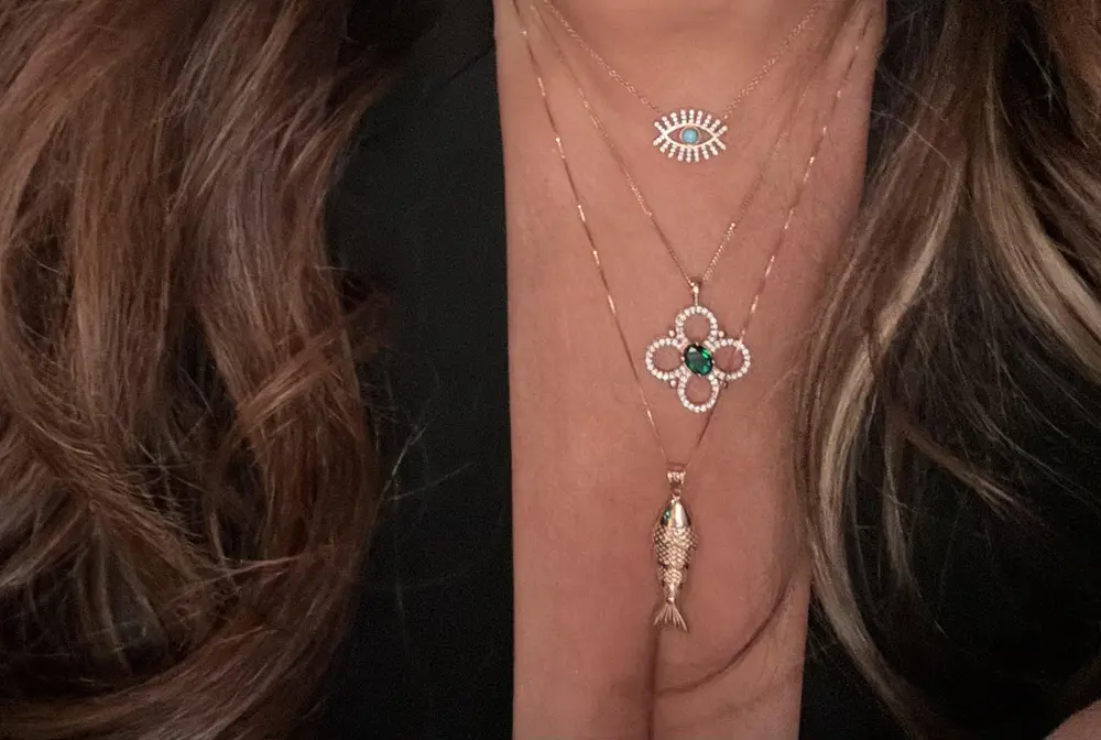 שרשרת תלתן יהלומי מעבדה עם רובי / אמרלד מעבדה