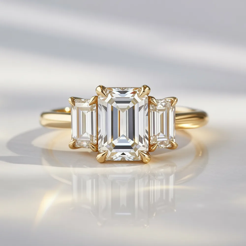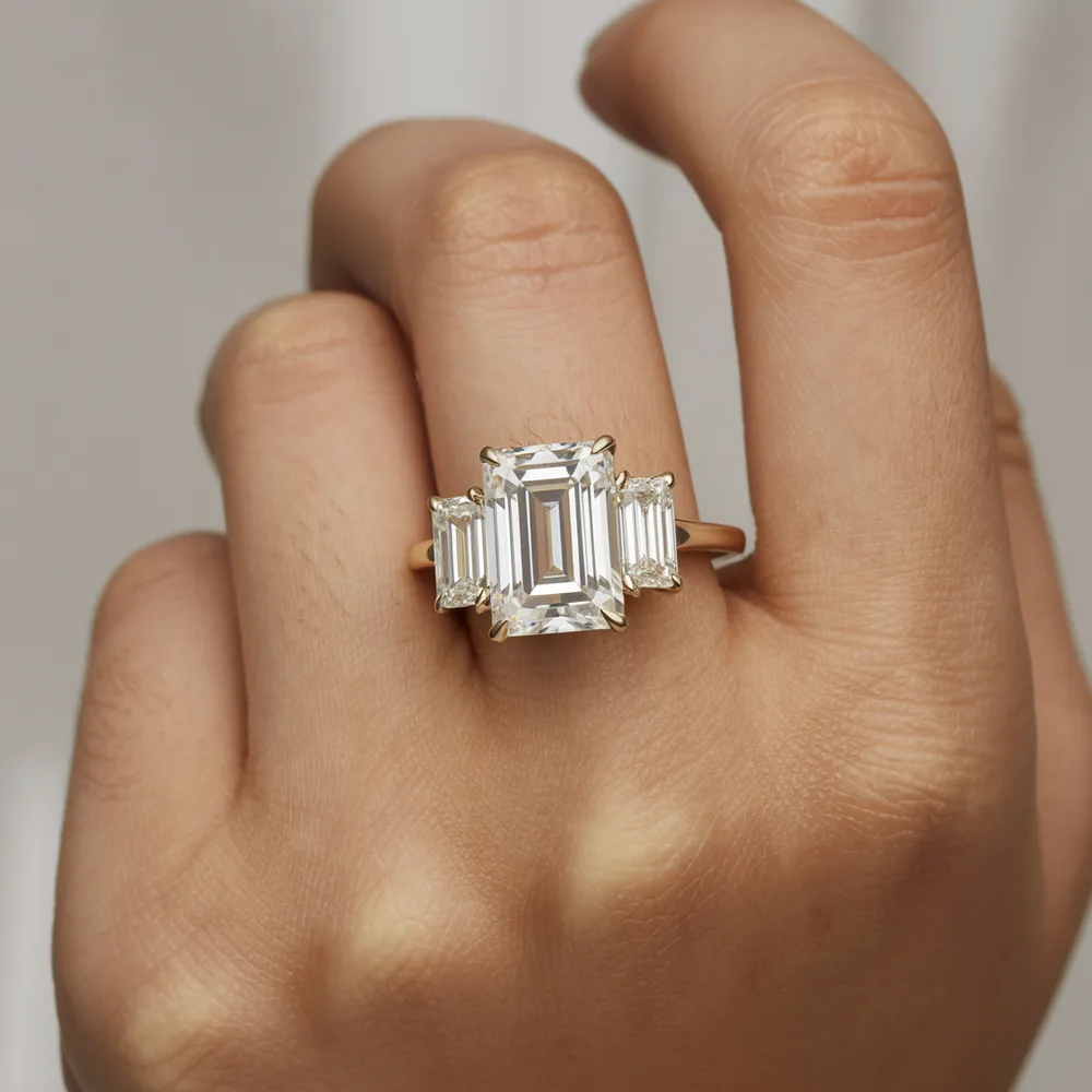 יהלום מרכזי מעבדה בחיתוך אמרלד משובץ בצדדים