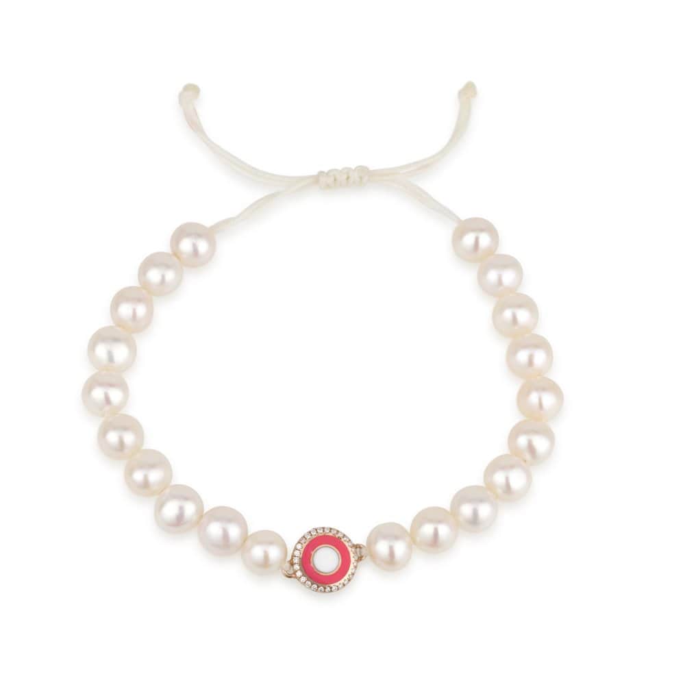 צמיד פנינים עם עין אמייל משובצת