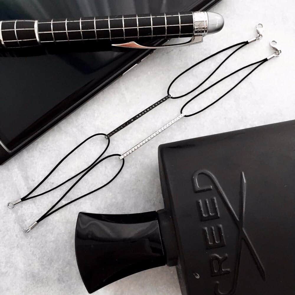 צמיד פס יהלומים שחורים עם חוט שחור 0.25 קראט