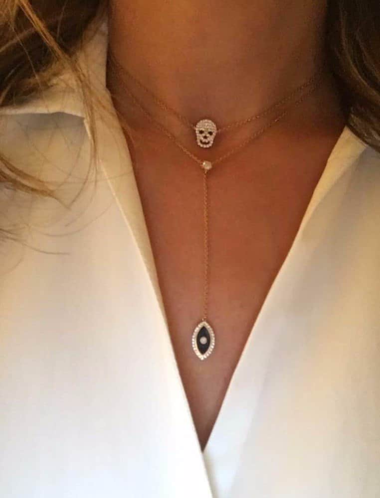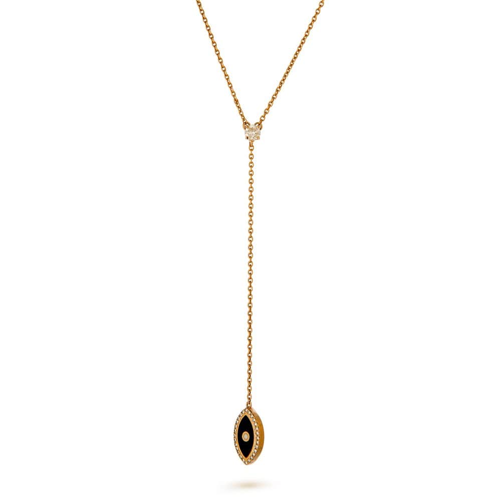 שרשרת עניבה יהלום ועין אמייל שחור משובץ