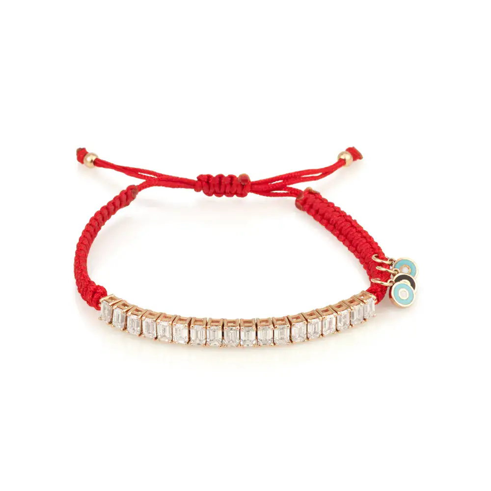 חצי צמיד טניס , צמיד יהלומים אמרלד קאט , יהלומי מעבדה. צמיד יהלומים עם חוט