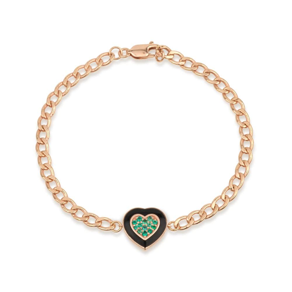 צמיד חוליות לב אמייל שחור ואמרלד מעבדהצמיד חוליות לב אמייל שחור ואמרלד מעבדה
