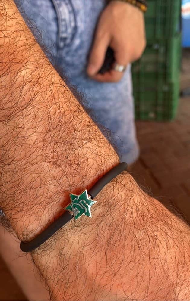 צמיד מכבי לגבר באמייל ירוק וזהב לבן