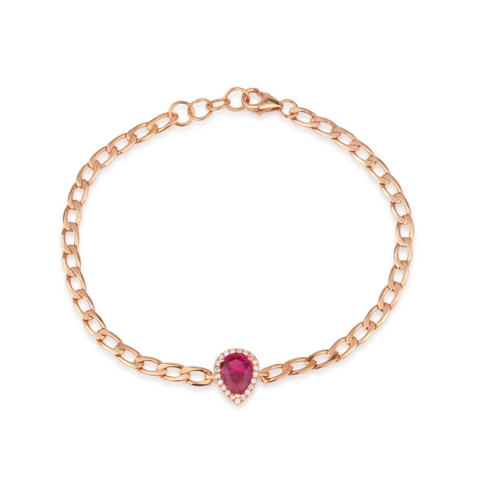 צמיד חוליות גורמט עם טיפה משובצת יהלומיםצמיד חוליות גורמט עם טיפה משובצת יהלומים