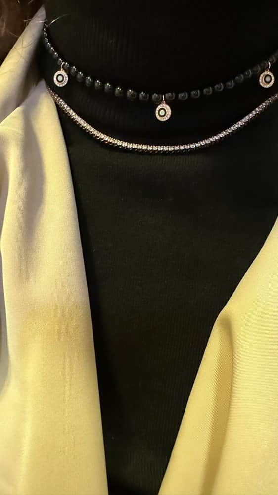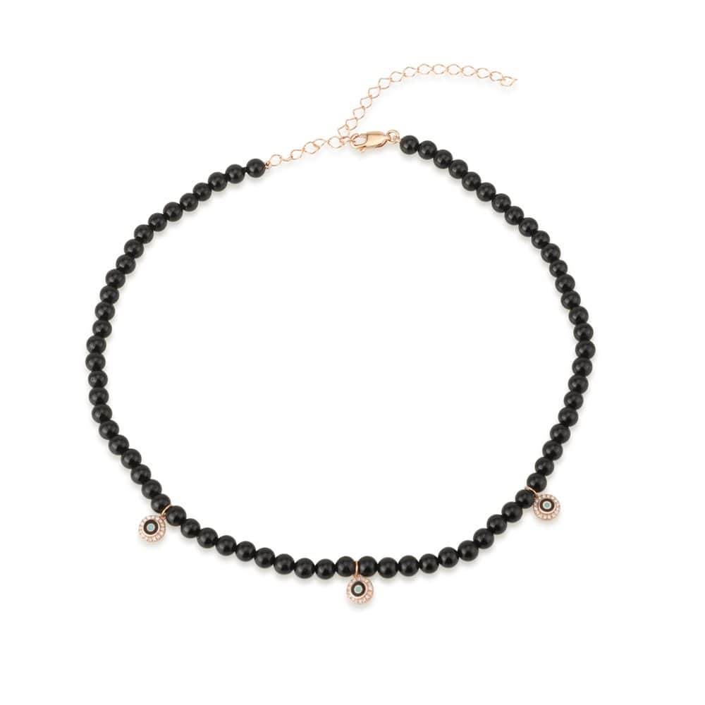 שרשרת חרוזים טורמלין שחור עם עיניים אמייל משובצות יהלומים