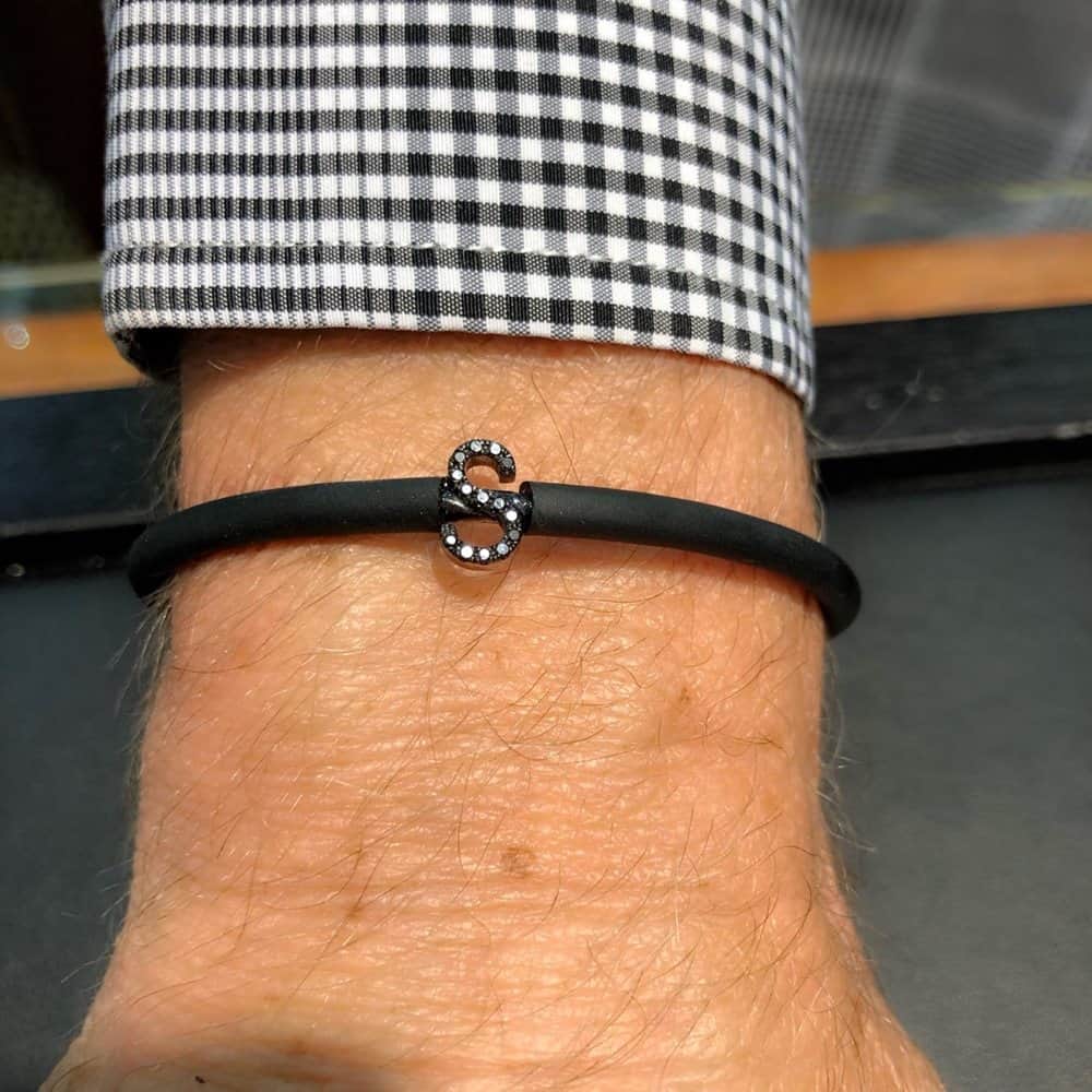 צמיד לגבר אותיות משובצות יהלומים שחורים