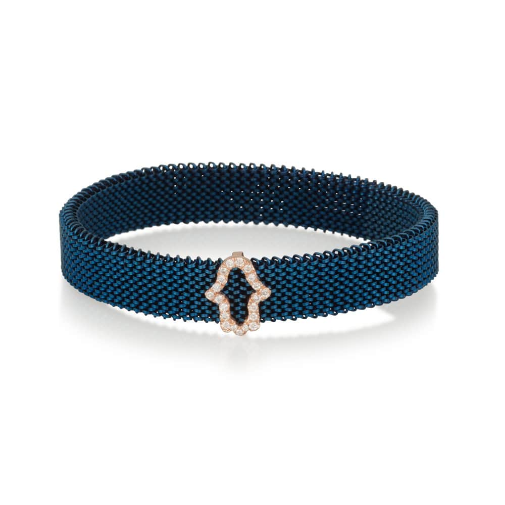 צמיד מתכת אל חלד עם חמסה גדולה משובצת יהלומים