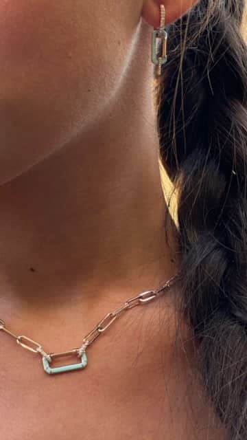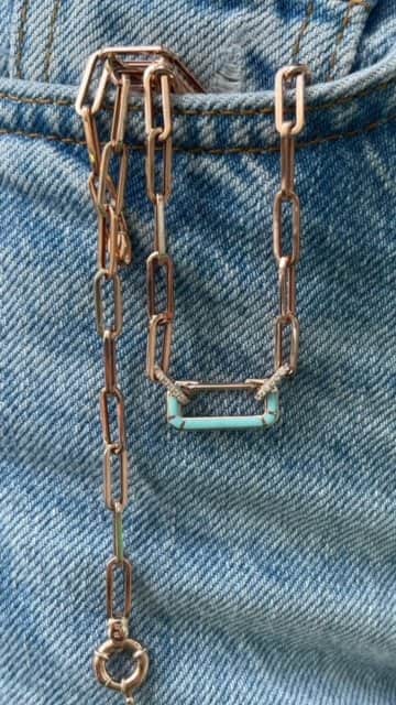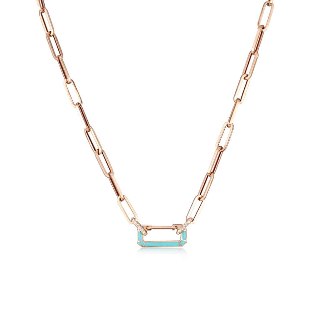 שרשרת חוליות עם אטב משובץ יהלומים ואמייל טורקיז