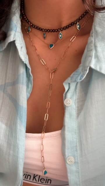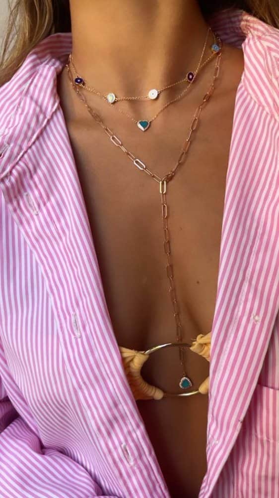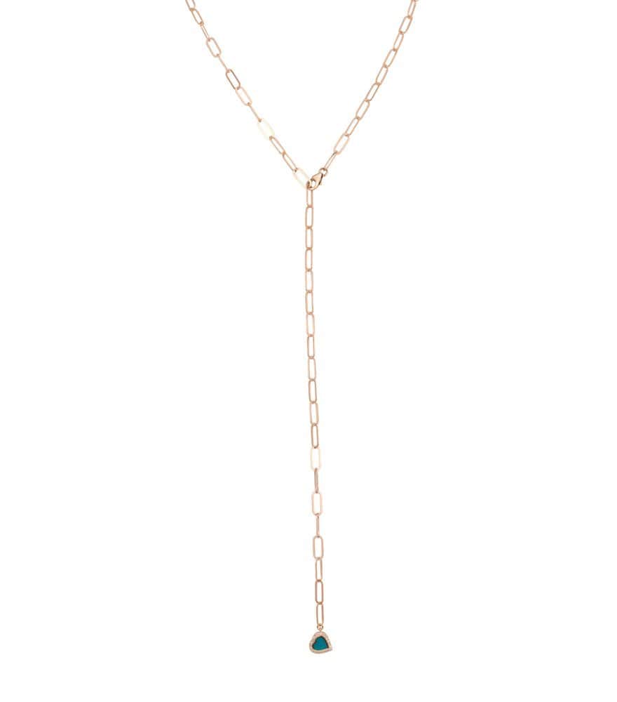 שרשרת סיכות בסגנון עניבה עם לב משובץ יהלומים בקצה