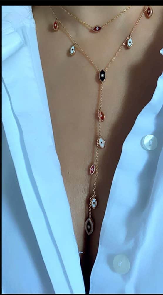 שרשרת עיניים בסגנון עניבה משובצת יהלומים