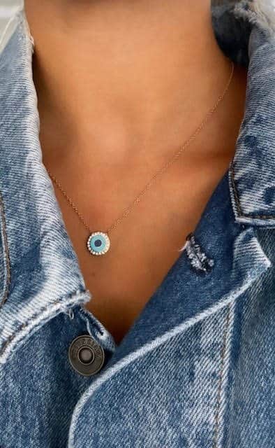 שרשרת עין אמייל עגולה משובצת יהלומיםשרשרת עין אמייל עגולה משובצת יהלומים