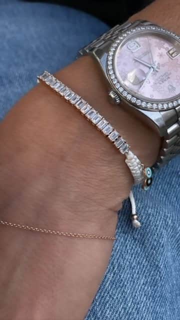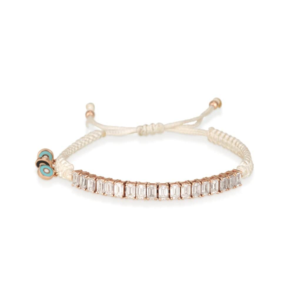 חצי צמיד טניס , צמיד יהלומים אמרלד קאט , יהלומי מעבדה. צמיד יהלומים עם חוט