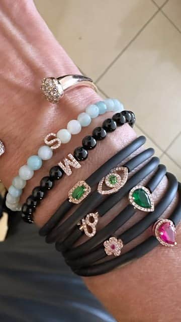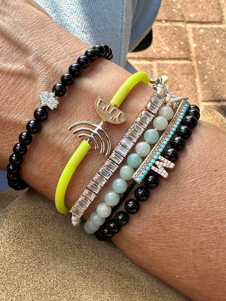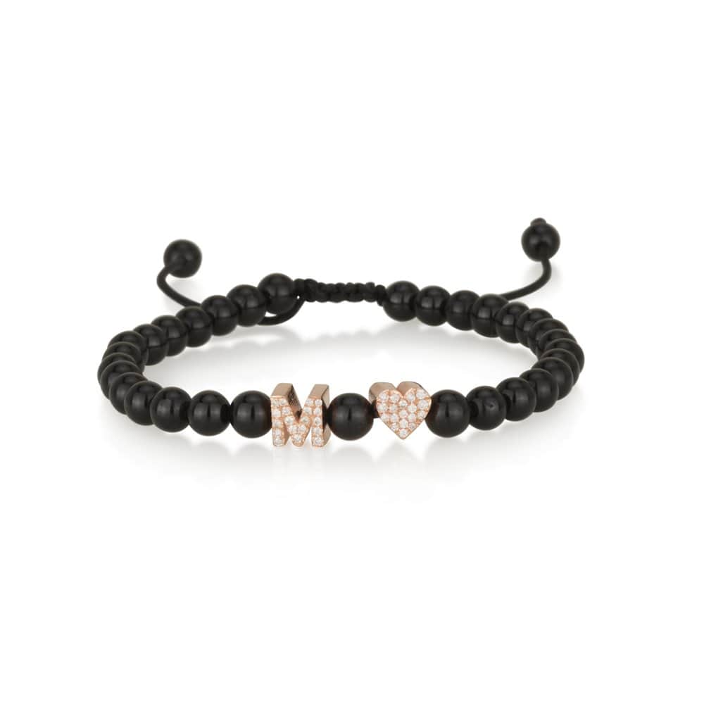 צמיד חרוזים עם אות או לב או כוכב או חמסה משובצים יהלומים