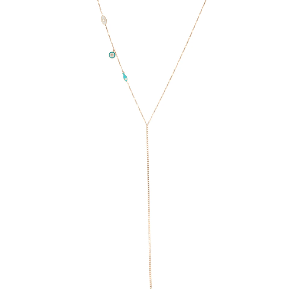 שרשרת עניבה עם פס יהלומים ואלמנטים מאמייל בצד